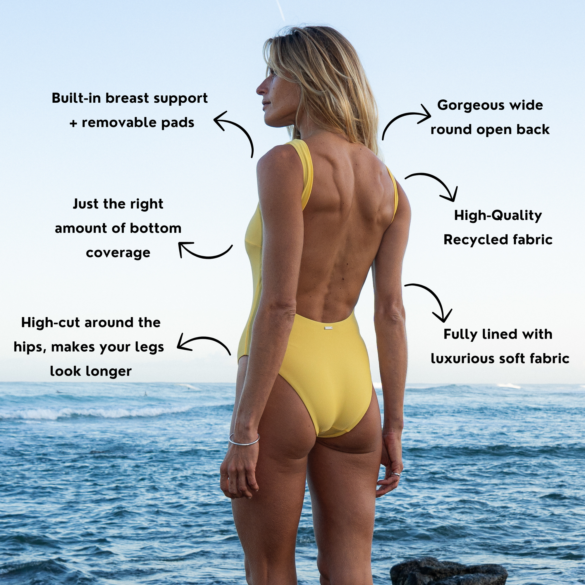 + Surf-proof one-piece or heavy surf-proof when paired with the Acotz Cropped top